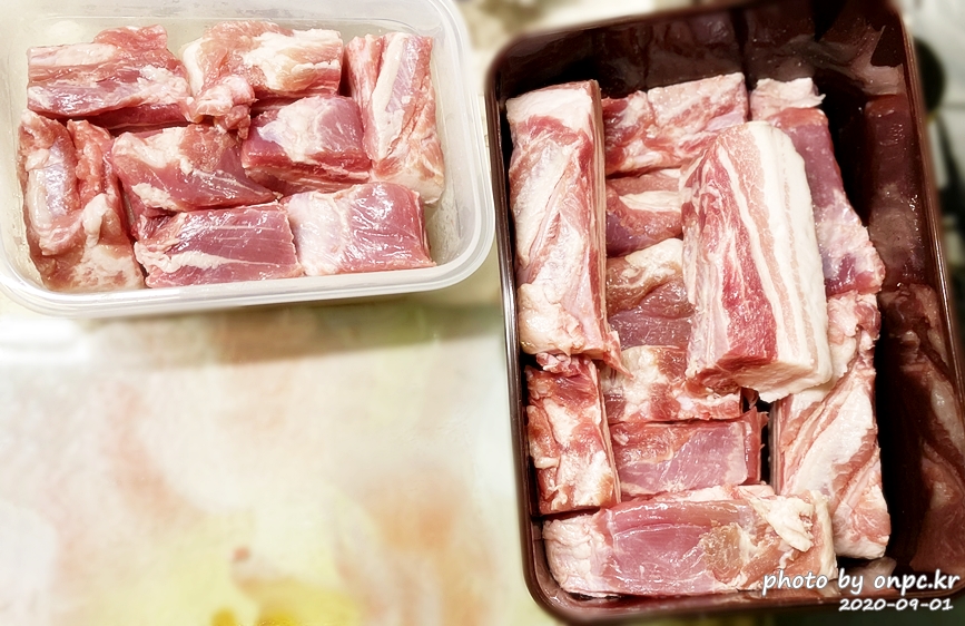 비교적 고기 비율이 많은 부위는 찌개용으로 따로 담았어요.