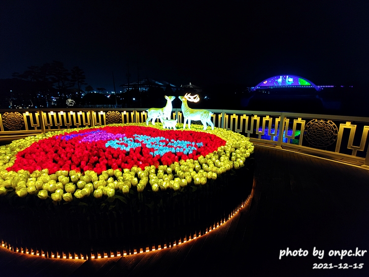 동궁원과 앞 광장에는 화려한 조명이 사람들의 시선을 사로잡네요.