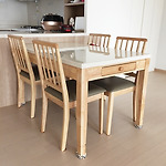 이사하면서 새로 구입하게 된 식탁을 소개합니다~제품은에넥스 프렌치 4인용 대리석 식탁세트!!( 식탁세트란? 식탁+의자가 세트로 구성된 제품 ) 바닥과 주방색에 어울리는 밝은 톤으로 구입했어요~온라인에서 구입했고 지방 배송은 보통 15일 정도 걸리지만 주문 폭주로 한 달 정도 걸렸어요.오래 걸렸지만 깔끔하고 맘에 들어요~ 대리석 상판과 네추럴한 원목 소재의 식탁이에요~ 사이즈식탁 1300w x 800d x 740h mm 아이보리 색상의 대리석 상판!마감도 깔끔하고 빛을 자연스럽게 반사하는 아이보리 색상으로 고급스럽네요~ 서랍이 있는 식탁으로수저, 포크, 냅킨 등 주방 용품을 수납하고 쉽게 꺼내서 사용할 수 있어 편리해요~ 서랍 옆 모습모서리 부분도 깔끔하게 처리되어 있어서 맘에 들어요 등받이가 빗살 모양의..