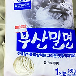 부산밀면전쟁 당시를 회상하는 그리운 옛 추억의 맛냉면이 먹고 싶었는데 메밀이 비싸서 밀가루로 냉면처럼 만들어서 먹었는데 그것이 바로 밀면!지금은 냉면처럼 사랑 받고 있고 별미로 즐겨 먹는 음식이다.부산, 경남, 울산 외에도 흔히 볼 수 있는 것이 밀면집이다..오늘은간단하게 해 먹을 수 있는 게 뭐 없을까 찾다가동네 슈퍼에서 우연히 발견하고 하나 구입해봤어요 칠갑농산의 '부산밀면'1인분 160g칼로리: 430kcal / 상온보관구성: 면 120g, 액상스프 40g / 면: 밀가루 93.0%가격은: 1,500원 냉면육수 액상스프산소흡수제 먹지마세요! 냄비에 물을 적당히 넣고 끓여줍니다~ 튀기지 않은 생면튀기지 않은 면이니 건강한 인스턴트제품이겠죠~ㅋ면이 부드럽네요. 밀가루가 면 겉 면에 묻어있어요따로 털어줄..