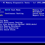 일반 컴퓨터용 DDR3메모리다. 참고 이미지 메모리 검사 프로그램으로 골드메모리다. 도스용이므로 시디로 부팅하거나 윈도우에서 가상 플로피를 이용해 실행해야한다. 간단하게 윈도우에서 가상플로피로 실행하는 버전을 받아보자^^ 실행하고 재시작 누르면 도스모드에서 파란 화면이 뜬다. (아래그림참고) 테스트모드는 빠른모드 일반 모드 정밀 모드가 있으며 단축키 T를 눌러 설정가능하다. 검사후 계속 할건지는 설정하는 단축키는 C다. 일반적으로는 모드만 바꾸고 바로 ESC눌러 실행하자. 이프로그램을 사용하는 이유는 여러가지 있겠지만 메모리 오버를 했을경우 안정화 테스트를 위함과 보드 메모리 술롯 불량테스트나 메모리 자체 불량테스트할때로 나뉜다. 파워유저라면 이런글 보고 있지도 않을테니 보통은 보드 메모리슬롯이나 메모리..