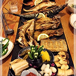 울산 달동에 위치한 생선 구이가 맛있는 집우리 동네 포차 달포(Daldong Cart Bar) 생선구이가 먹고 싶어 가게된 달포 가게 입구에 있는 미니 포장마차달포집의 돌출 간판처럼 만든거 같은데 멀리서봐도 딱 포차집으로 보이니 아이디어가 좋은듯하네요작은 사이즈로 고양이집처럼 보여 앙증맞기도 하네요 달포 매장 안은 인테리어도 작은 포차 분위기로~ 5~6개의 테이블이 있는 달포 차림표생선구이 - 모듬 생선구이, 고등어구이, 가자미구이숙회 - 밀고동 숙회, 문어 숙회, 밀고동+문어무침 - 밀고동 무침, 골뱅이 무침, 오징어 무침특선 메뉴 - 동해산 생 백골뱅이 숙회/무침, 호래기회, 오징어통찜마늘 닭똥집, 오뎅탕, 매운 오돌뼈, 라면/짜파게티 기본으로 나오는 안주안주로는 7종~ 모듬 생선구이를 주문!원래는 ..
