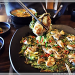 막바지 추위를 보내며...오랫만에 포스팅합니다. 뜨끈한 국물과 땡글한 굴! 체인점인 굴국밥 전문점 본가굴국밥에 다녀왔어요. 가게 내부모습 계산대와 테이블들 계산대쪽에는 커피도 판매하네요. 식자재 이미지들로 꾸민 깔끔한 인테리어 메뉴판 저희가 주문한 메뉴는 굴국밥 2인세트(굴국밥+굴전)에요. 소스와 밑밥찬 겉절이와 절임밥찬 굴국밥이에요. 보통 일반적인 굴국밥은 투명하거나 맑은데 여기는 빨간국물이네요. 머랄까 약간 라면스프(?)맛이랄까 그렇다고 라면스프를 넣은건 아니지만 국물이 특이한 곳이였어요. 미역과 두부도 들어있네요. 굴전이에요. 얇은 전에 굴이 제법크고 탱글해서 씹히는 느낌이 좋네요. 2인세트 전체 상차림 모습! 굴국밥안에 계란이 딱! 취향에 따라 초반에 먹으면 반숙으로~후반에 먹으면 완숙으로~ 굴전..