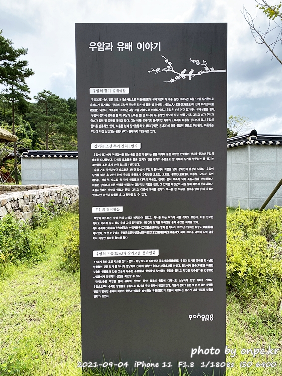 우암은 71세였던 1677년 3월 부인 이 씨의 상을 당하여 멀리서 통곡했다..라는 문구가 유배생활의 고통이 느껴지네요..