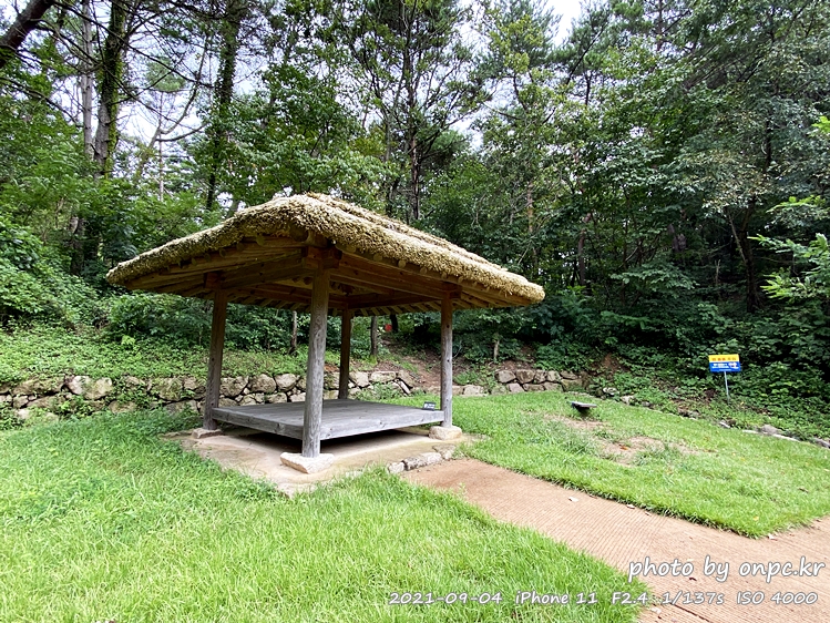 민속놀이 마당 입구에 설치된 나무 정자에서 잠시 쉽니다.