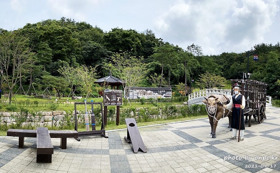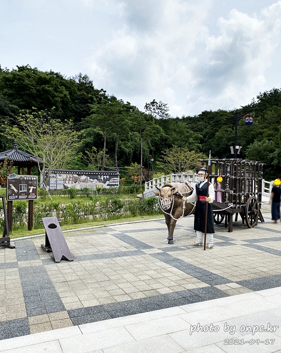 포졸이 소를 잡고 소가 끌고 가는 수레 형틀을 재현해 놨어요. 계단 올라가면 안에 들어갈 수 있어요.