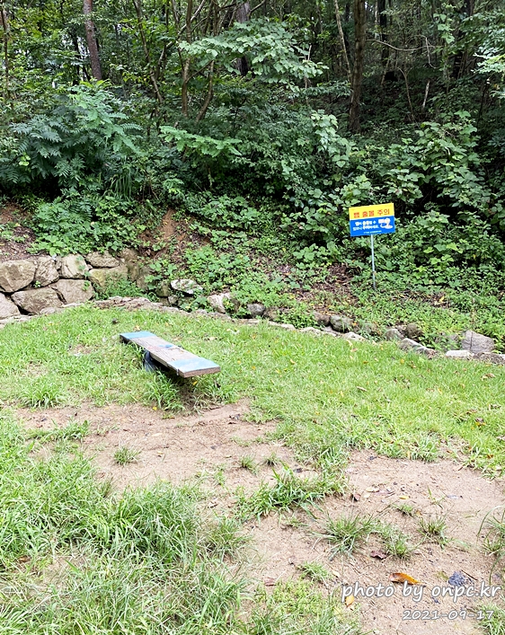 널뛰기 옆에 뱀 출몰 주의!! 안내판. 뱀이 출몰할 수 있으니 주의하세요~ ㄷㄷ 무서워서 가까이 가지 않았어요..