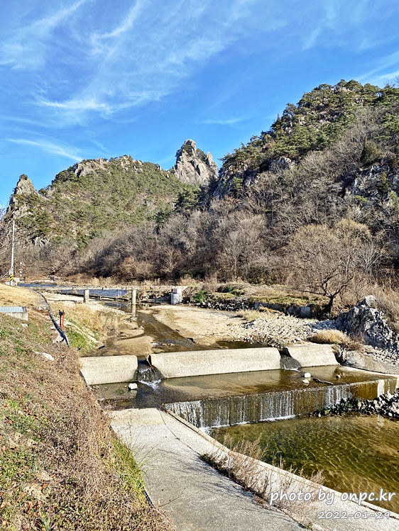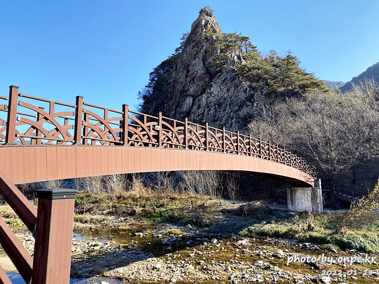다리에서 정면으로 보이는 뾰족한 모양의 기암바위들이 신비스럽고 멋집니다.