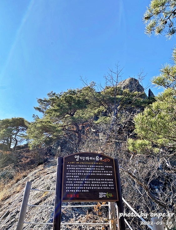 앵기랑 바위 입구에 다다르면~ 앵기랑 바위의 유래 표지판이 세워져 있어요.