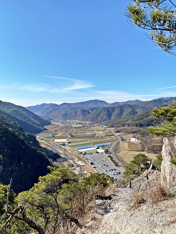 만약 올라가면 앵기랑 바위 사이로 뚫려있는 동굴과 멀리 군위댐까지 한눈에 내려다볼 수 있다고 해요.
