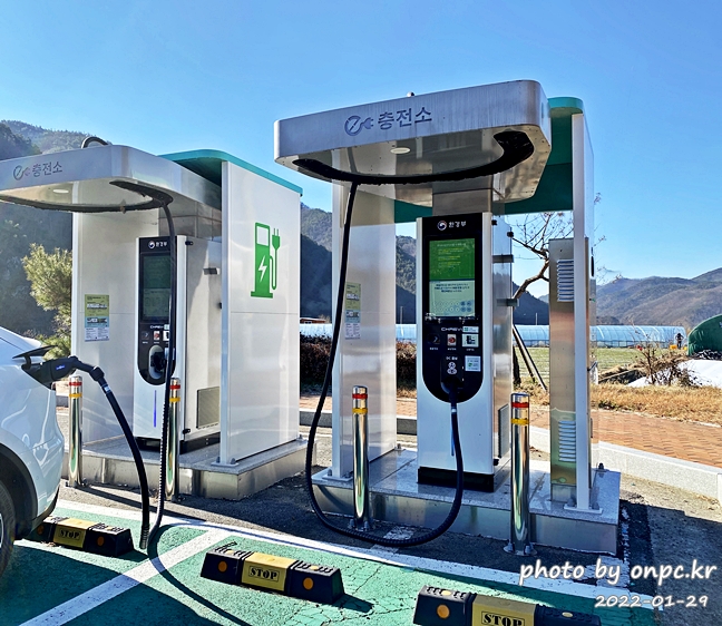 100kw 급속 충전기여서 산행 전이나 하산 후에 금방 충전하고 이동할 수 있어요~