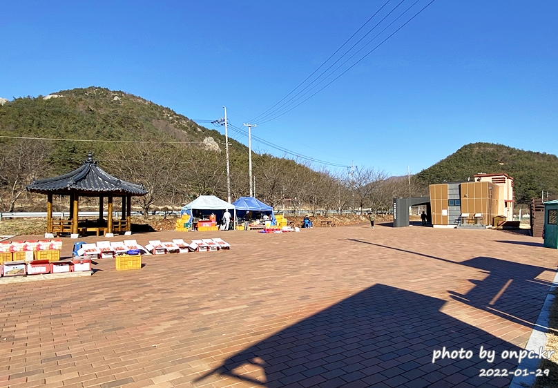 주차장 한편에는 화장실과 지역 농산물 판매 모습을 볼 수 있어요.