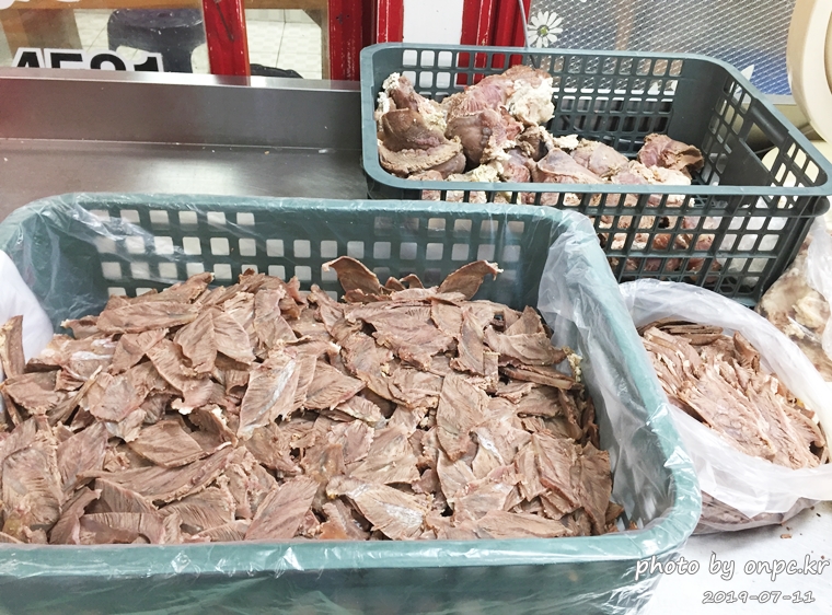 포장 전에 고기는 살코기만, 내장만, 아님 둘 다 섞어서로 선택할 수 있으니 미리 얘기하면 됩니다. 전 섞어서 포장.