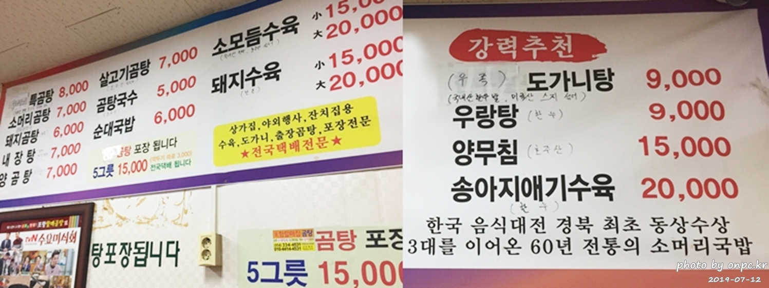 ₩ 가격은 곰탕이 7천 원, 특곰탕이 8천 원. 다른 메뉴는 차림표에서 확인하세요~ (곰탕 포장되고 전국 택배 됨)
