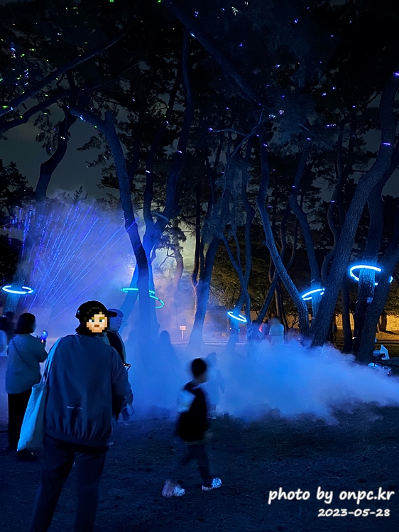 그림자 연극을 본 후 바로 옆으로 이동하면 나무 숲 속에서 화려하게 반짝이는 불빛과 스모그를 만날 수 있어요.