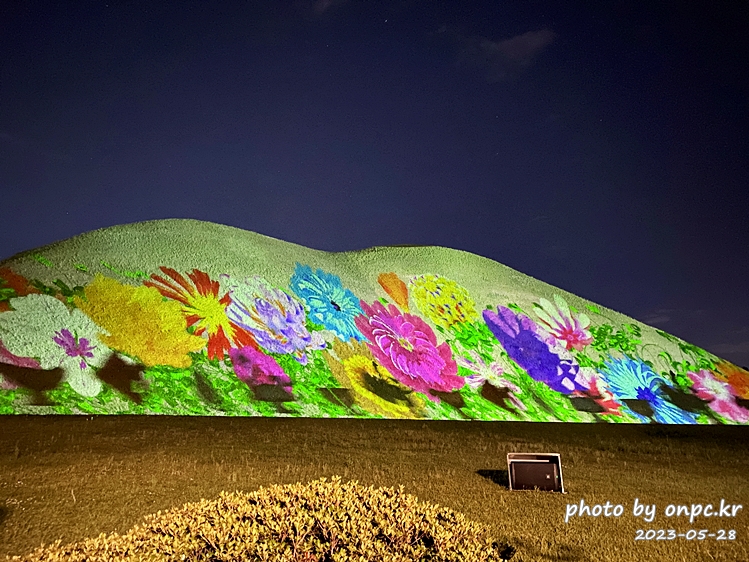 대릉원 고분군의 곡선을 따라 표현한 작품들이 화려하고 아름다운 밤이에요.