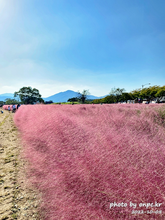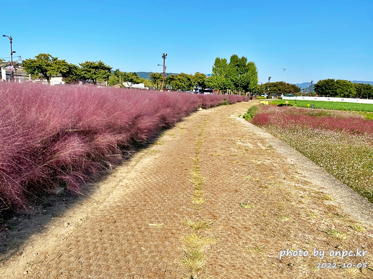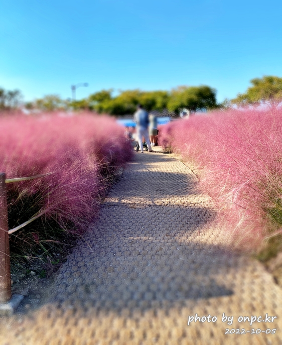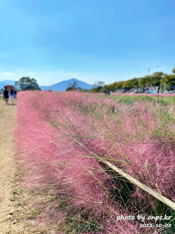 핑크뮬리 군락 주변으로 야자매트가 깔려있고 핑크뮬리 사이로 관람로가 조성되어 있어 거닐며 사진 찍기 좋아요~