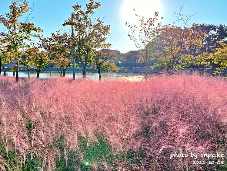 산책로를 따라 아름다운 핑크뮬리를 감상할 수 있어요.