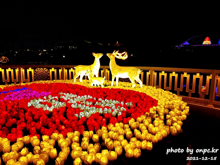 동궁원과 앞 광장에는 화려한 조명이 사람들의 시선을 사로잡네요.