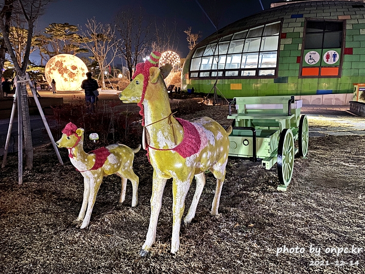 LED 빛이 강해서 사슴 앞에서 기념사진 찍으면 사람은 잘 안 보여요.ㅎ