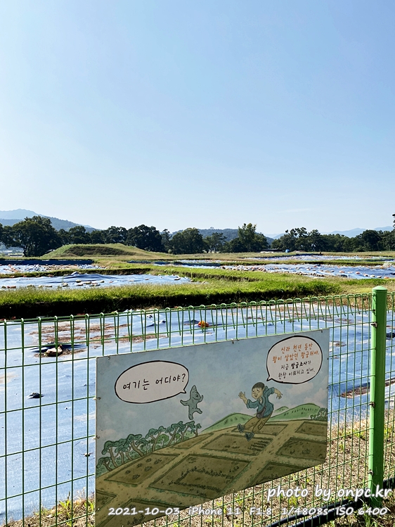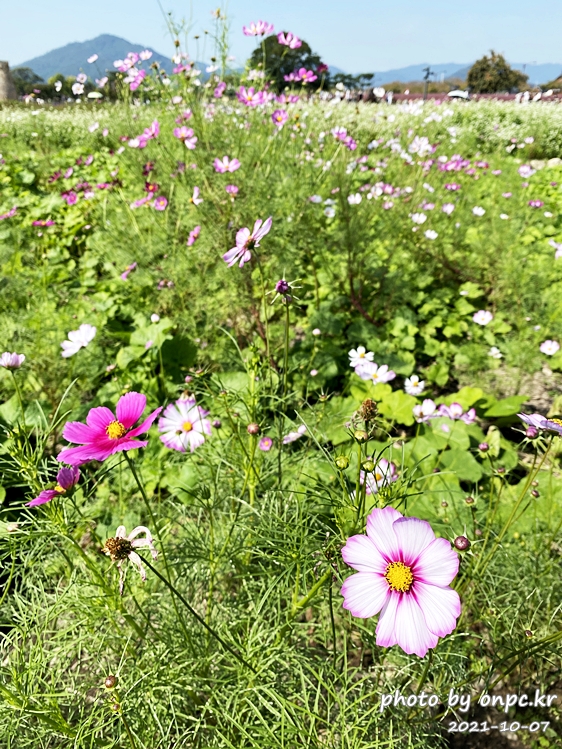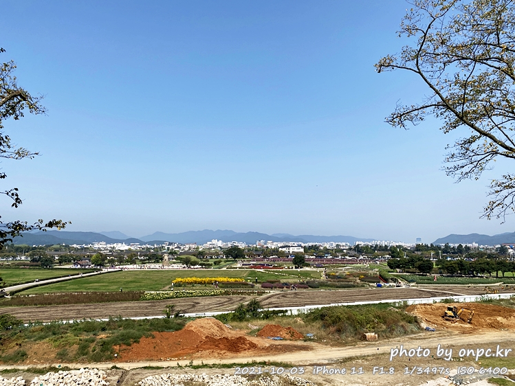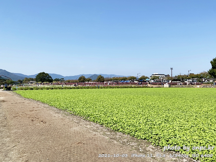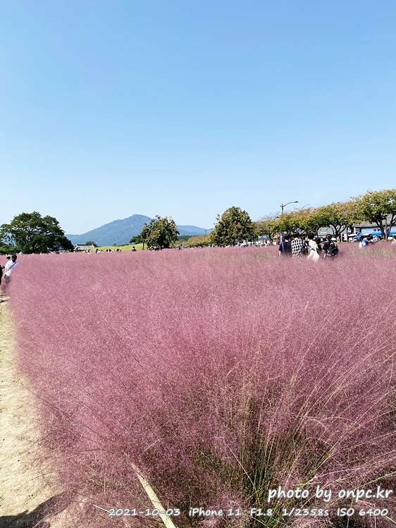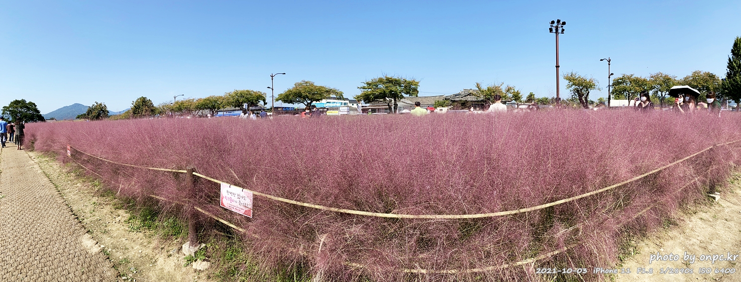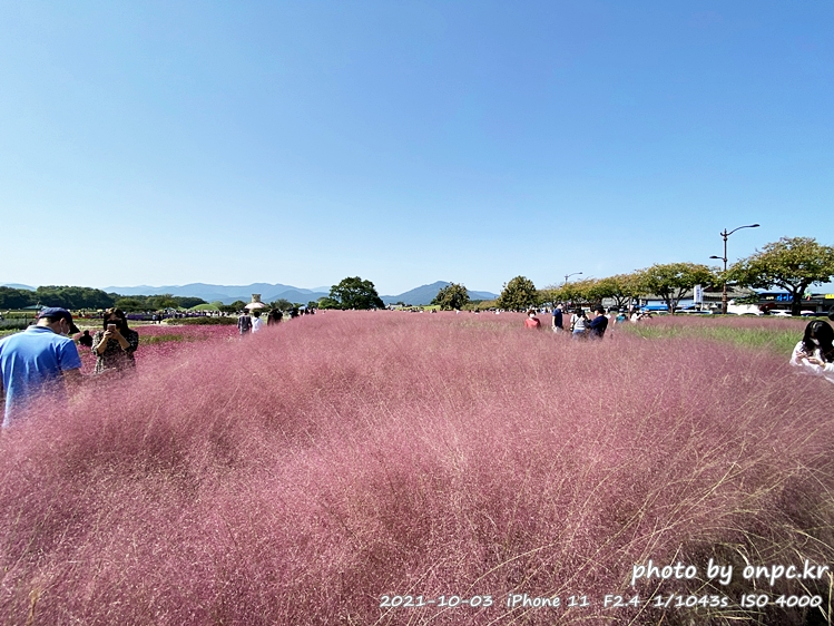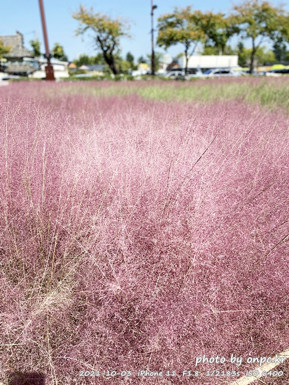 이제 첨성대 근처 황화 코스모스&핑크 뮬리 군락지로 걸어갑니다~