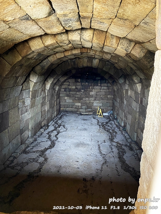 약 1,000여 개의 돌이 쓰였고 천장 외부는 봉토의 형상을 한 석빙고의 내부 모습.