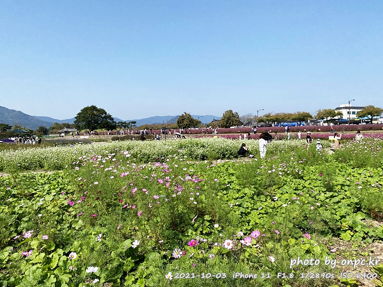 멀리 꽃 단지에 꽃들이 가득하고~ 꽃을 찾아 나들이 나온 사람도 많이 보이네요.