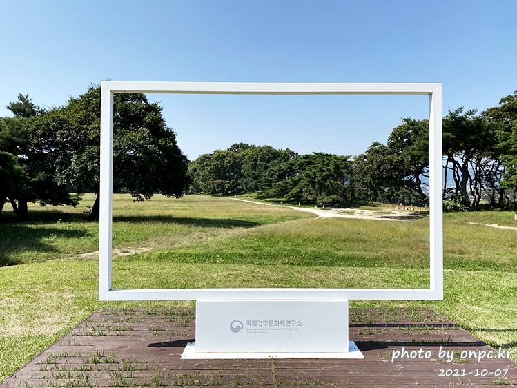 가로수 사이 바닥에 신라왕들이 순서대로 적혀있어요. 아이들 학습에 좋을듯해요~