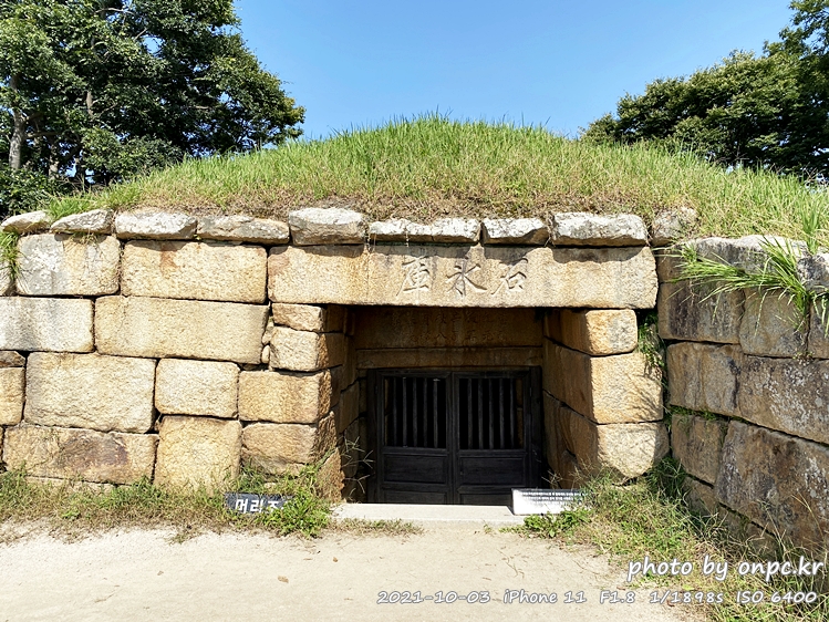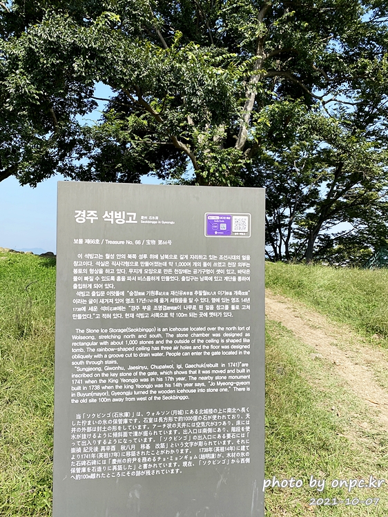 석빙고 도착~ 입구에는 '석빙고'라는 글자가 돌 위에 한자로 새겨져 있어요.