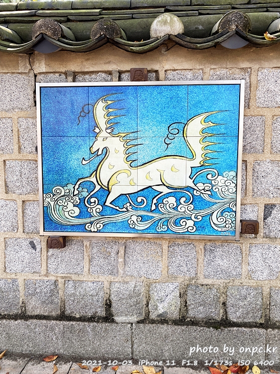 긴 돌담길을 걷다 보면 시와 그림 등이 돌 담벼락에 전시되어 있어 다양한 작품을 보면서 걸을 수 있어요~