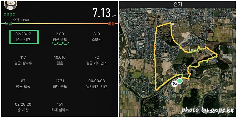 천천히 걷는 경주 도심 트레킹의 총시간은 2시간 28분, 거리는 7.13km.