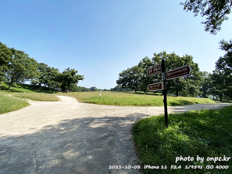 흙길을 지나 조금만 걸어서 올라가면 넓은 평지와 석빙고 가는 길 안내 이정표를 볼 수 있어요.