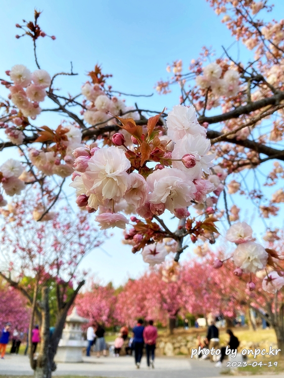 보문호수 산책로를 걷다 보면 보문수상공연장 옆으로 겹벚꽃을 만날 수 있어요.