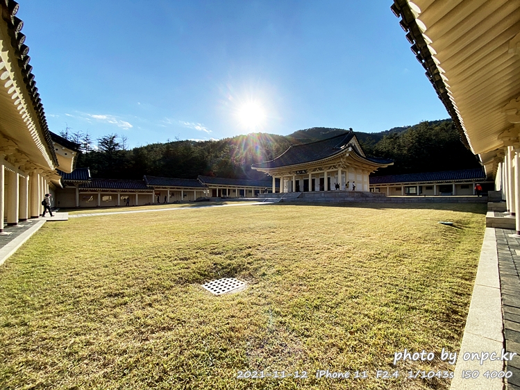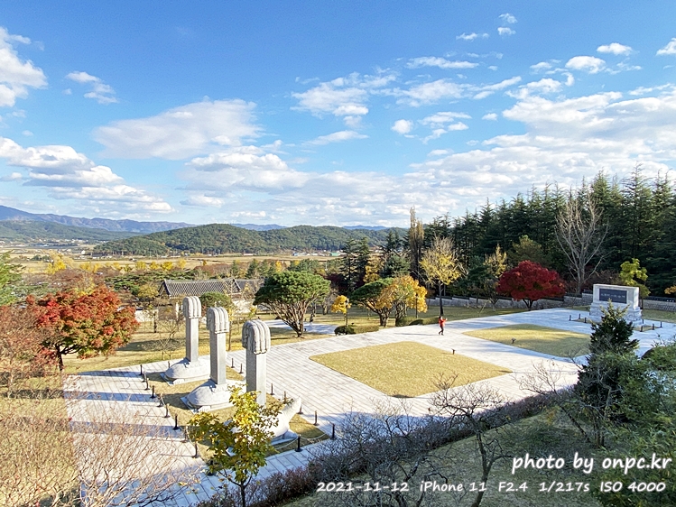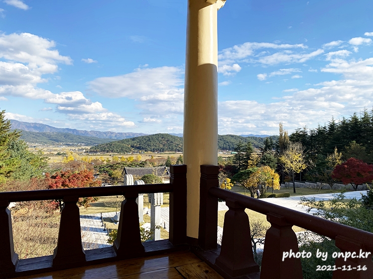 높은 곳에서 내려다보니 저 멀리 산과 가을 들녘, 통일전 광장 모습까지 전체적으로 볼 수 있어요.