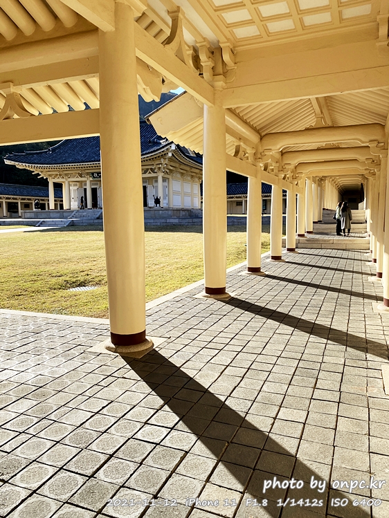 회랑 좌우 끝에 난간이 있어 신발을 벗고 올라갈 수 있어요.