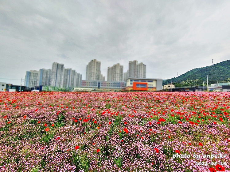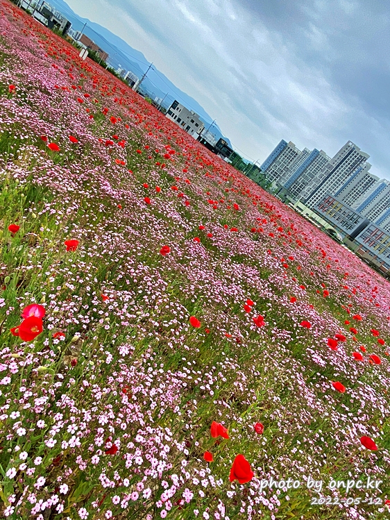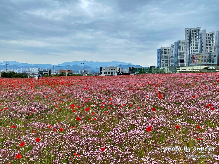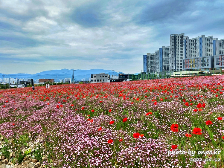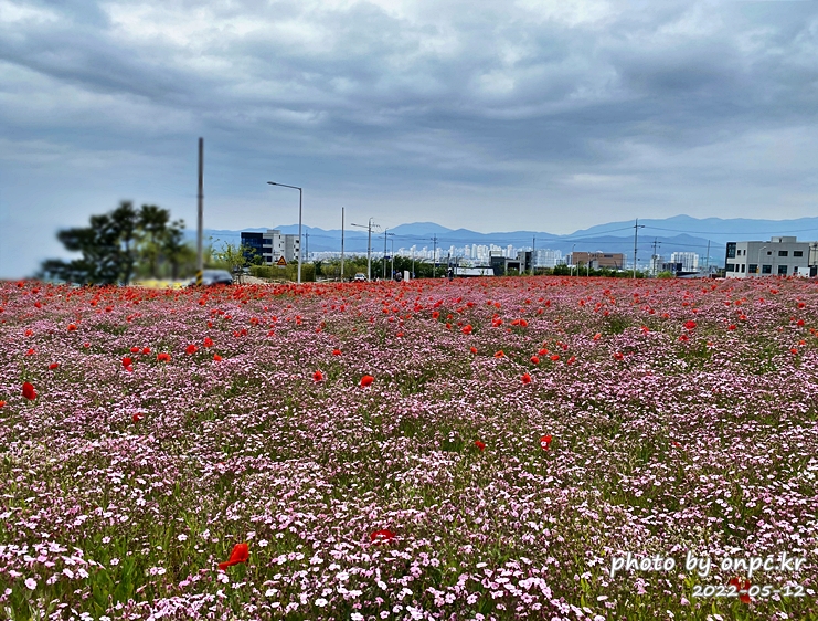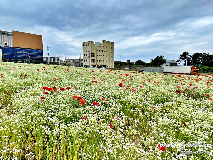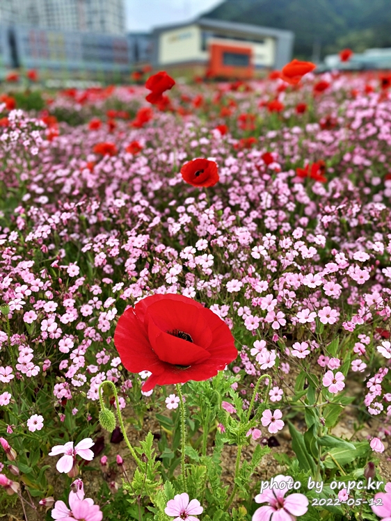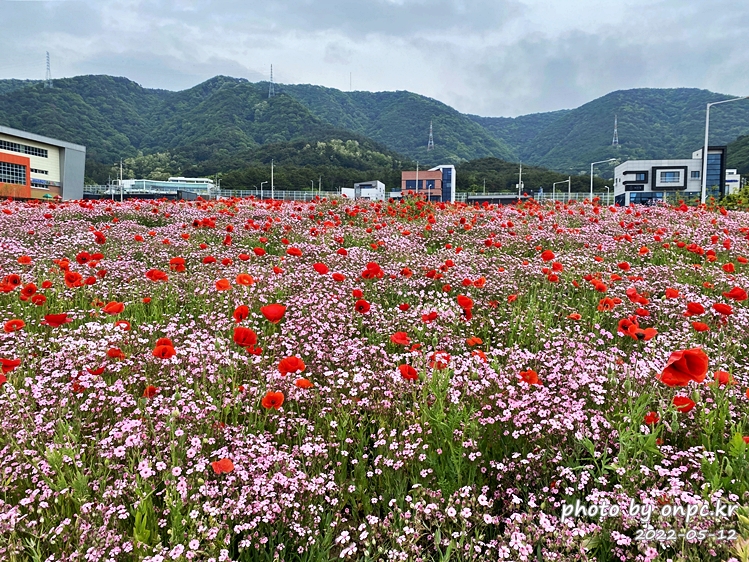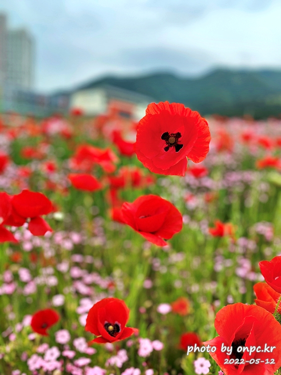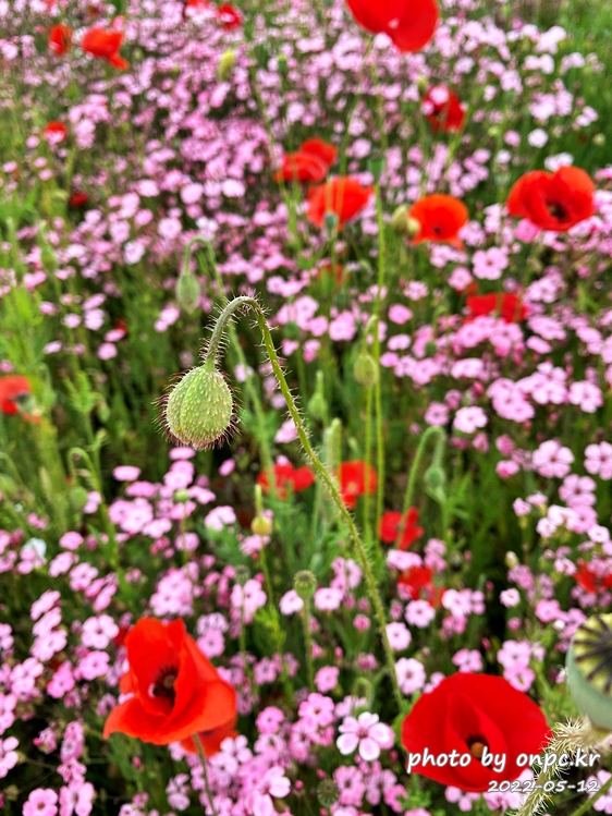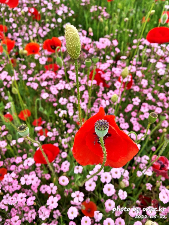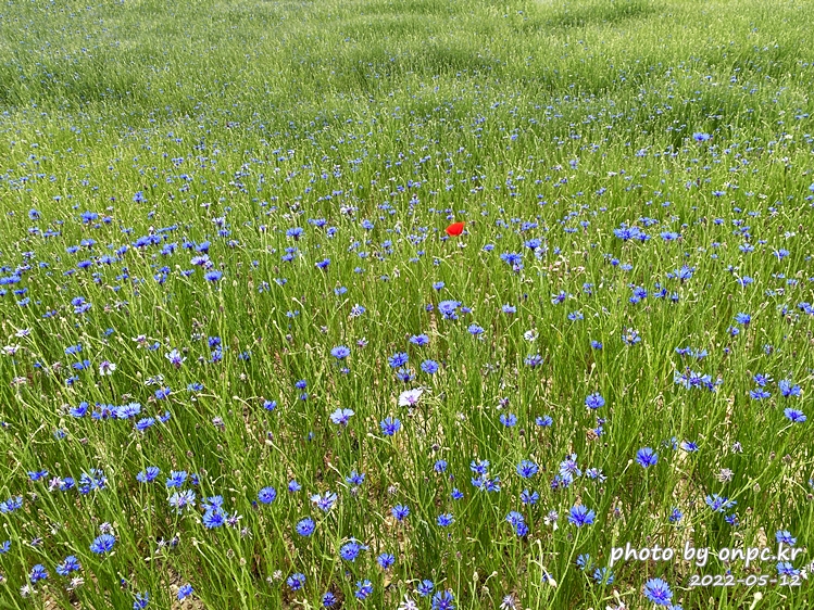 선명한 붉은빛의 양귀비꽃, 푸른 수레국화, 안개초 등 아름다운 봄꽃 구경하고 추억으로 사진 속에 담아보세요.