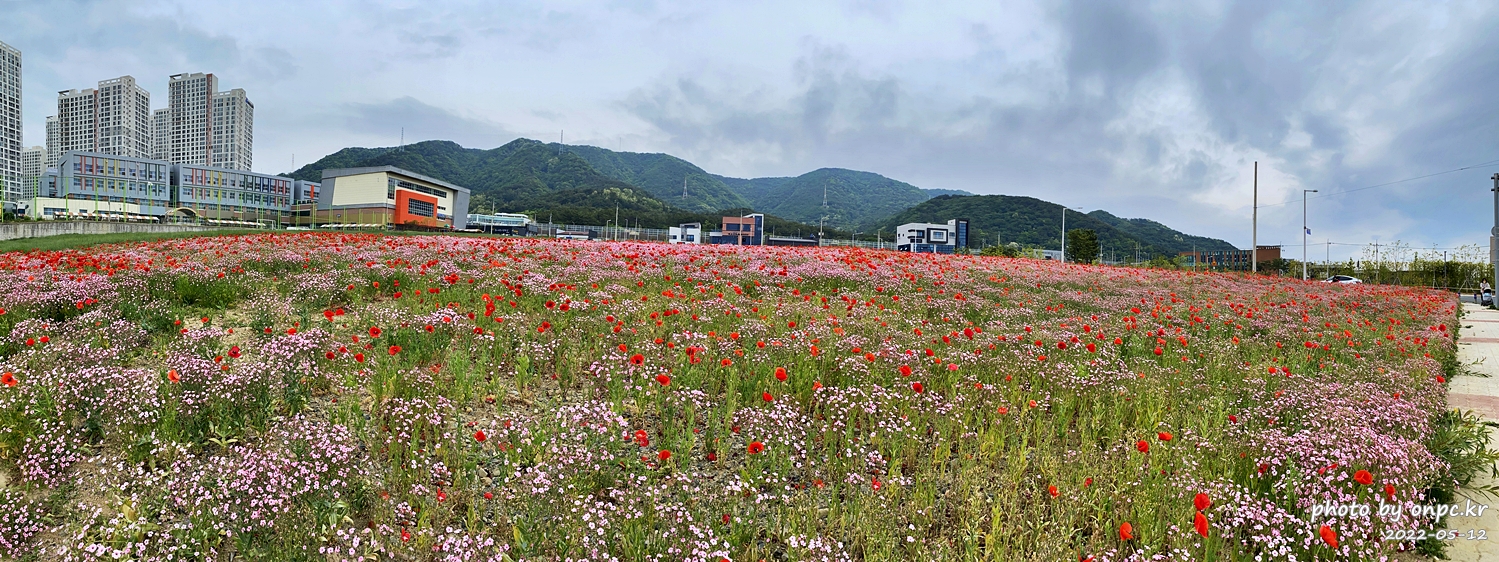 근처에도 택지개발지구 공터에 대규모 꽃단지가 조성되어 있어서 차를 타고 이동해봤어요.