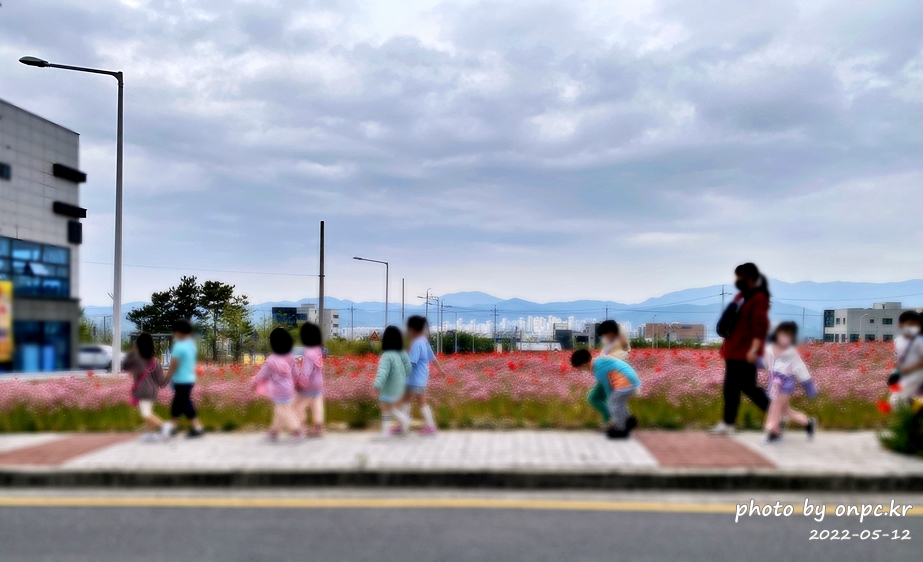 나들이 나온 꼬마 친구들~ 꽃 보면서 손잡고 걷는 모습이 귀엽네요.