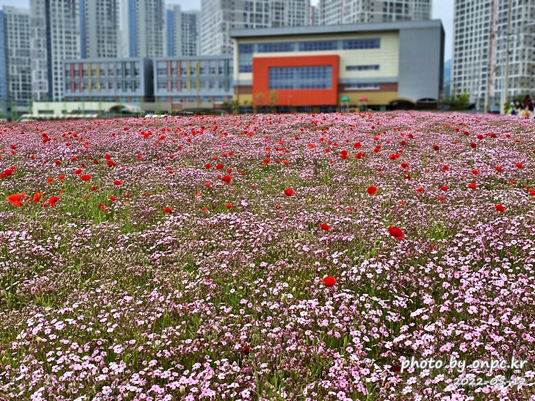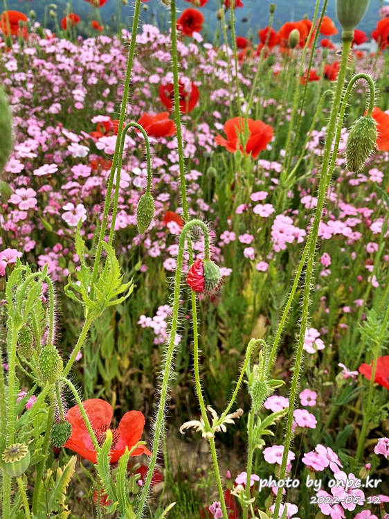 선명한 붉은빛의 양귀비꽃, 푸른 수레국화, 안개초 등 아름다운 봄꽃 구경하고 추억으로 사진 속에 담아보세요.