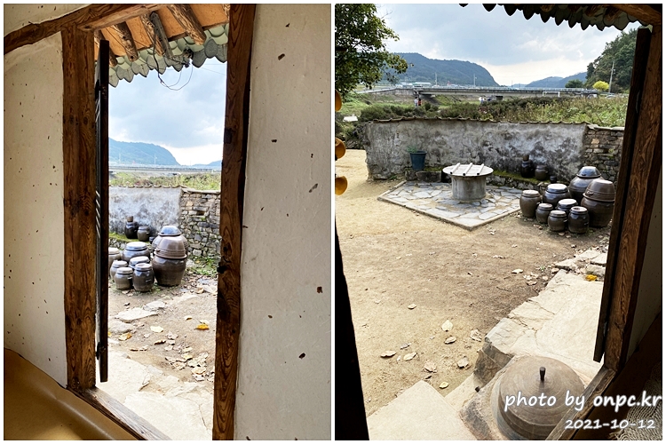 집안에서 마당을 내다보면 담장 아래 우물과 장독대, 아궁이와 무쇠솥..
