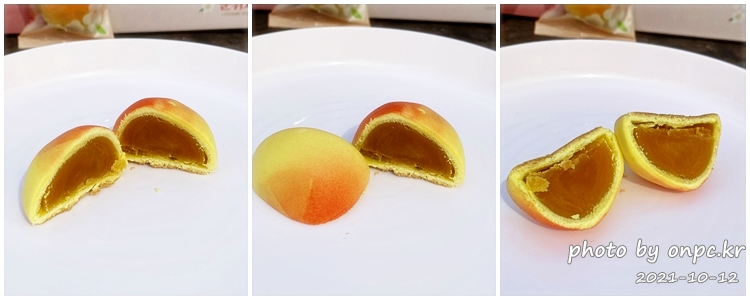 작은 빵 안에 속이 꽉 찬~ 상큼한 향이 살짝 나는 노란 앙금이 꽉 차 있어요.