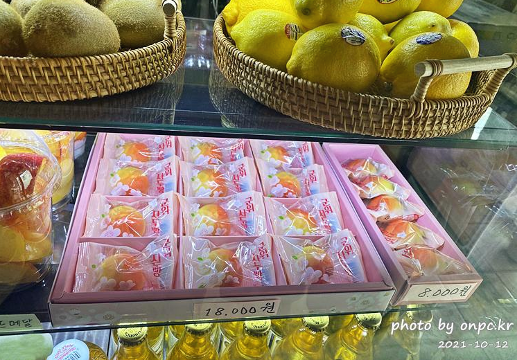 군위에는 자두가 유명해서 자두 빵이 특산물이래!! 한번 먹어봐 정말 맛있다고!!라고요~