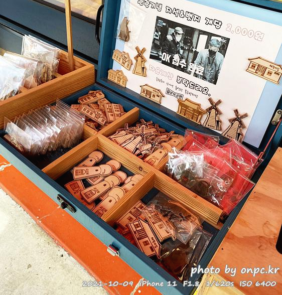 화본역, 급수탑 등 마그넷 기념품 5종을 만원에 판매하고 있고 역 근처 꽈배기 집 구매할 수 있어요.