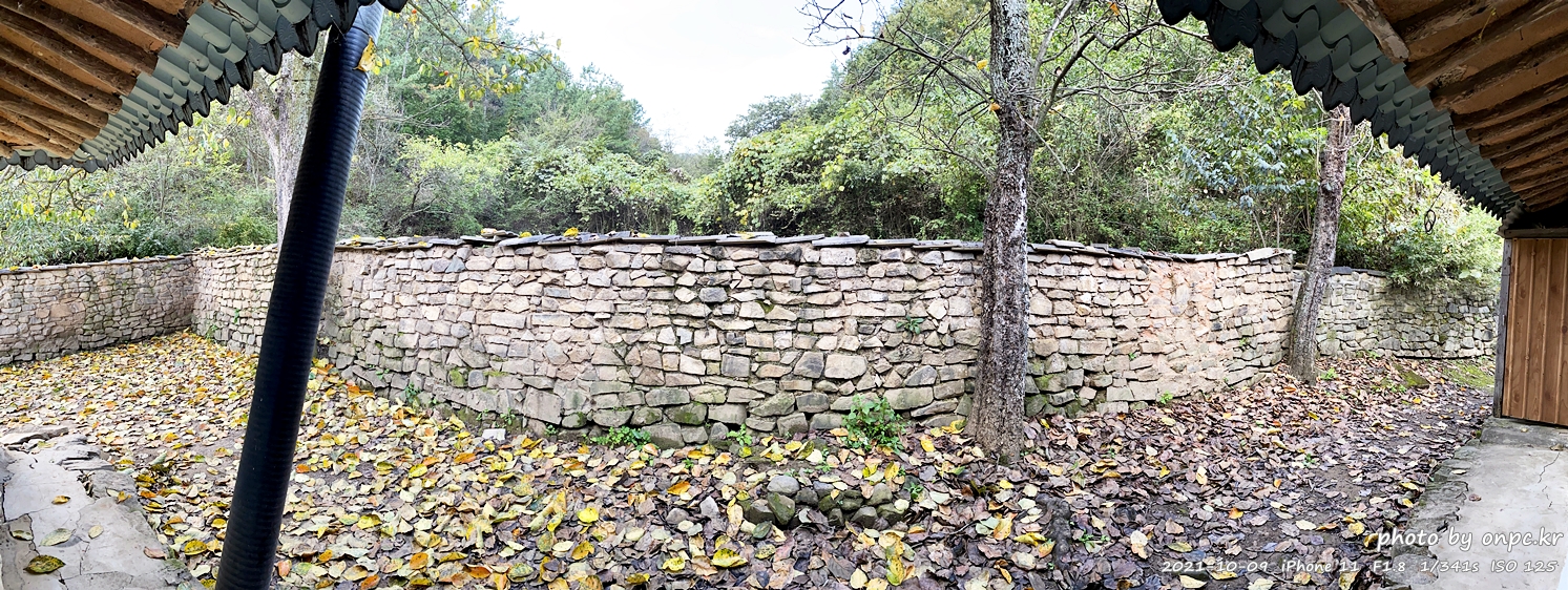 둘러보고 나오는 길에 담장 앞에서 찍어봤어요. 돌담이 정겨운 느낌입니다~