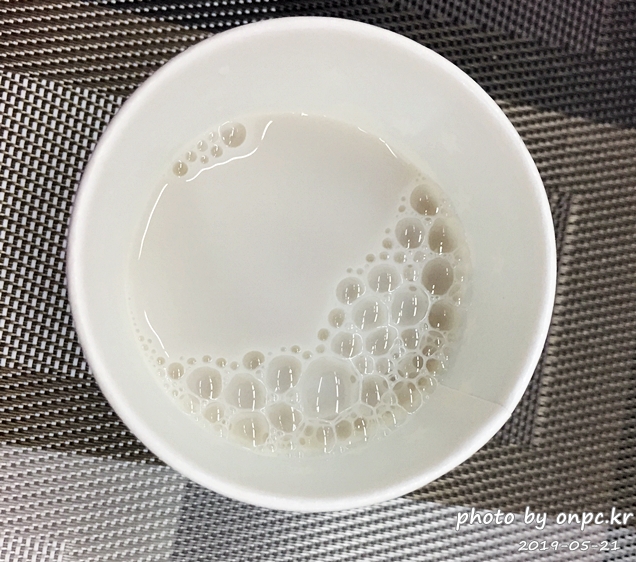 첫맛은 무척 고소합니다. 두유 같은 진한 맛의 고소함은 아니고 가볍고 맑은 느낌의 고소함?입니다.