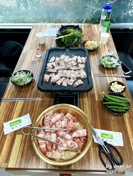 코로나 19로 사회적 거리두기 실천을 위해 집밥만 먹다 보니 첫 외식으로 고소한 대패삼겹살이 엄청 먹고 싶네요.