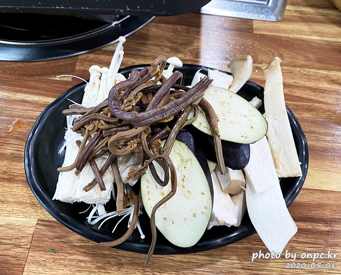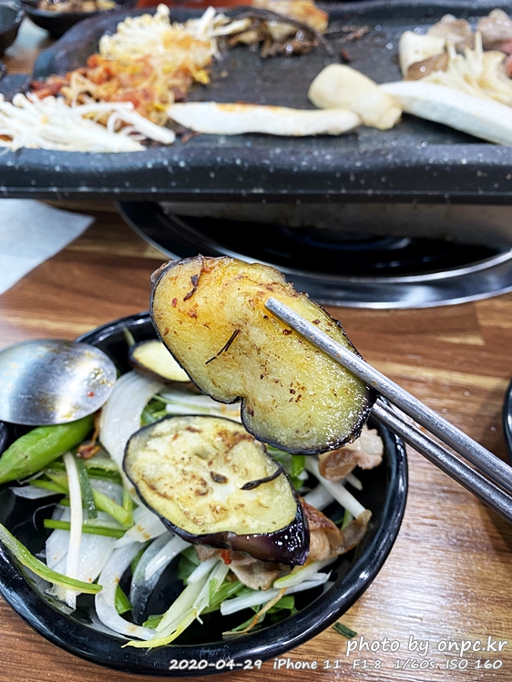 삼겹살 구운 기름에 함께 구워 먹으면 버섯, 가지도 말이 필요 없죠.