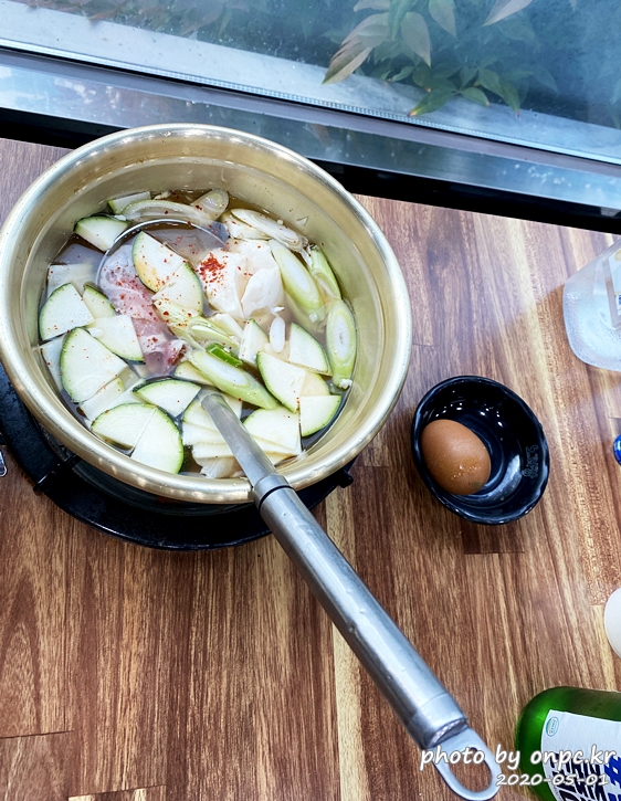 서비스로 나온 순두부찌개~! 날 계란도 하나 나와요.