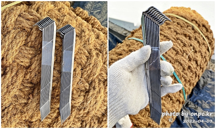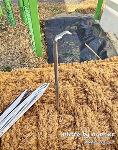 고정핀까지 박아주고 야자 매트 설치가 모두 끝났습니다.