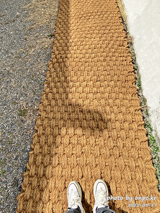 산책로, 등산로, 공원에서 자주 보이는 멍석이라고 불리는 매트가 코코넛 야자 매트입니다.